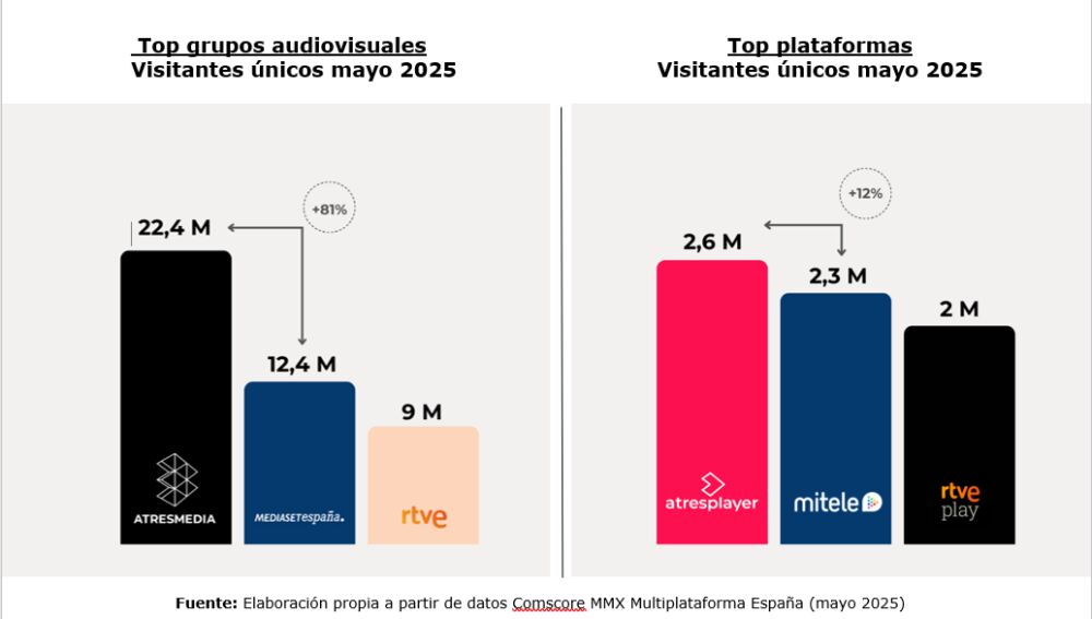 Con este resultado, Atresmedia continúa destacando en el ranking de sites más visitados en España ocupando el 8º puesto, de nuevo a una rotunda distancia sobre su competidor, que queda en la 31ª posición.